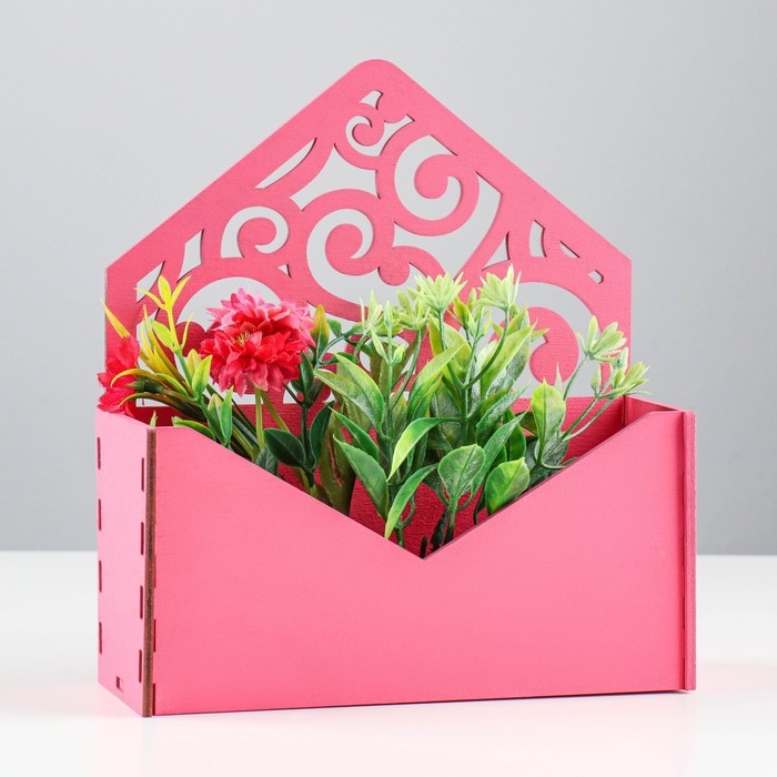 Кашпо деревянное 18×6×20 см Конверт Радель "Дуновение", розовый Дарим Красиво