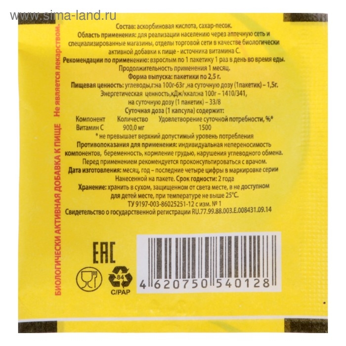 Состав аскорбиновая кислота, сахар-песок.