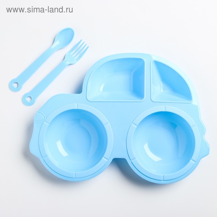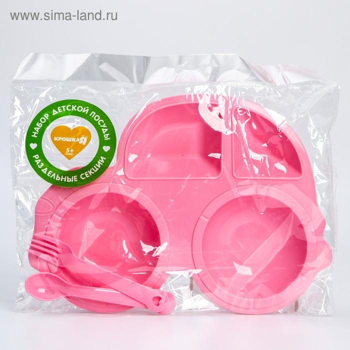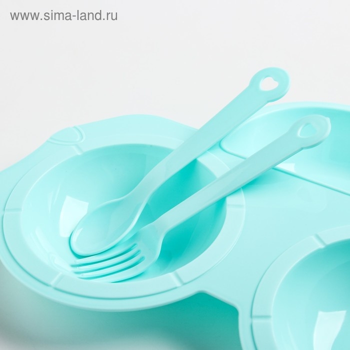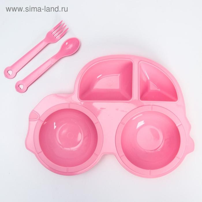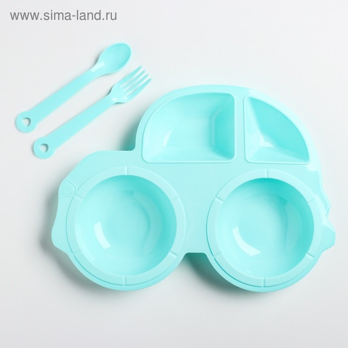 Тарелка Крошка Я в наборе вилка, ложка, цвет МИКС