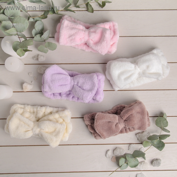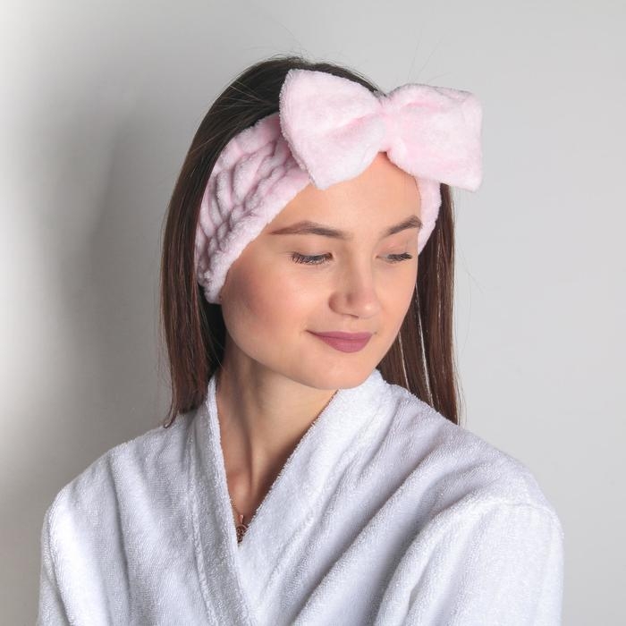 Повязка для умывания из микрофибры Доляна «Бантик», цвет розовый