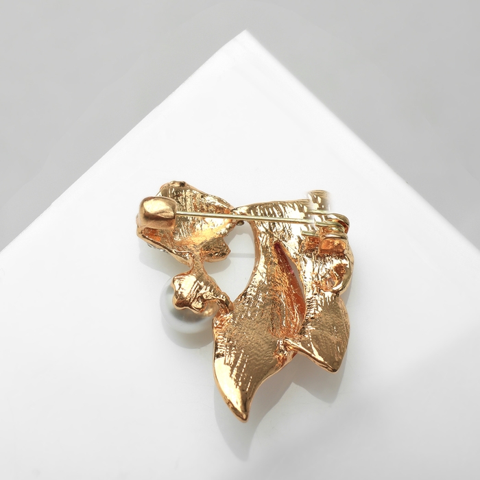 Брошь «Бантик» с жемчужинками, цвет белый в золоте