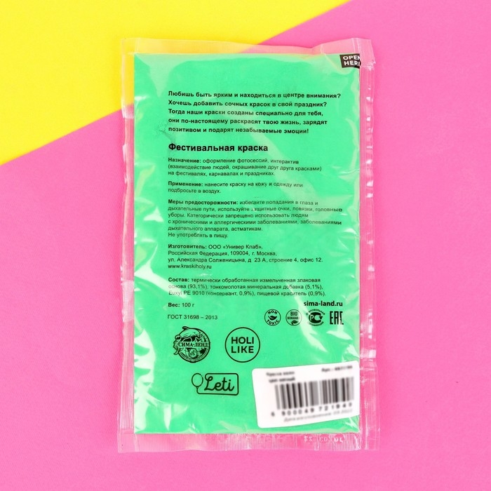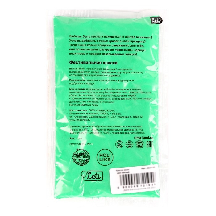 Краска холи, цвет салатовый, 100 г