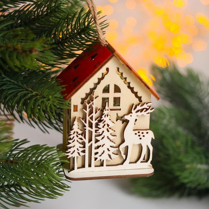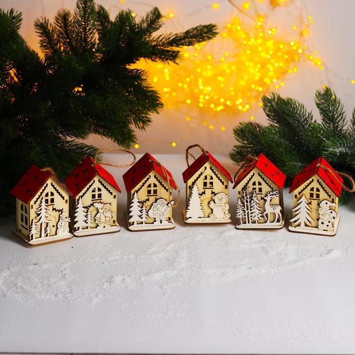 Новогодний декор с подсветкой «Домик с красной крышей» 9×6×7 см, МИКС