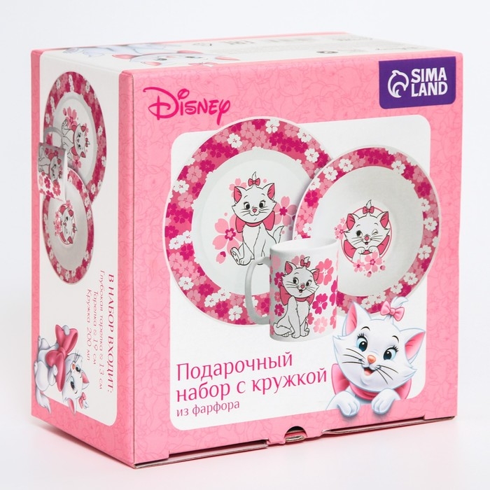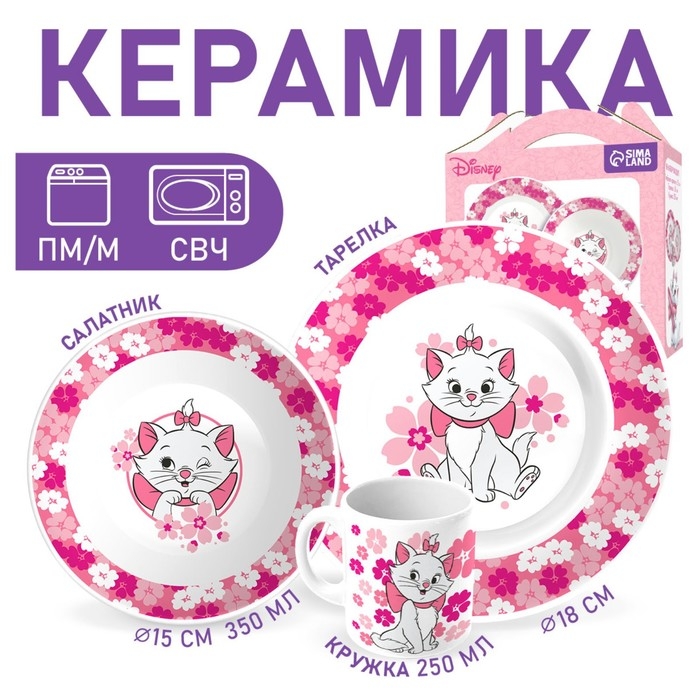 Набор посуды из керамики, 3 предмета: тарелка Ø 16,5 см, миска Ø 14 см, кружка 200 мл, "Кошечка Мари", Коты Аристократы