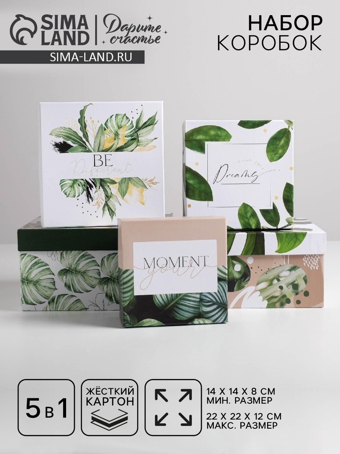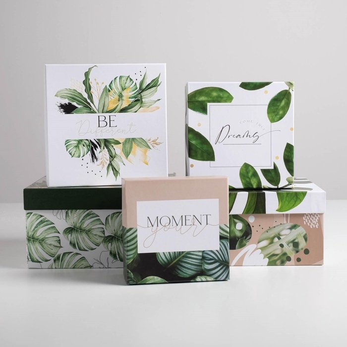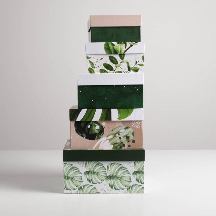 Набор коробок 5 в 1, упаковка подарочная, «Тропический», 14 х 14 х 8‒22 х 22 х 12 см