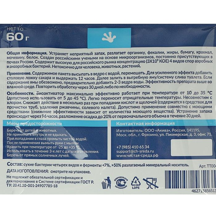 Биоактиватор для дачного туалета "Туалет дачный", 60 гр