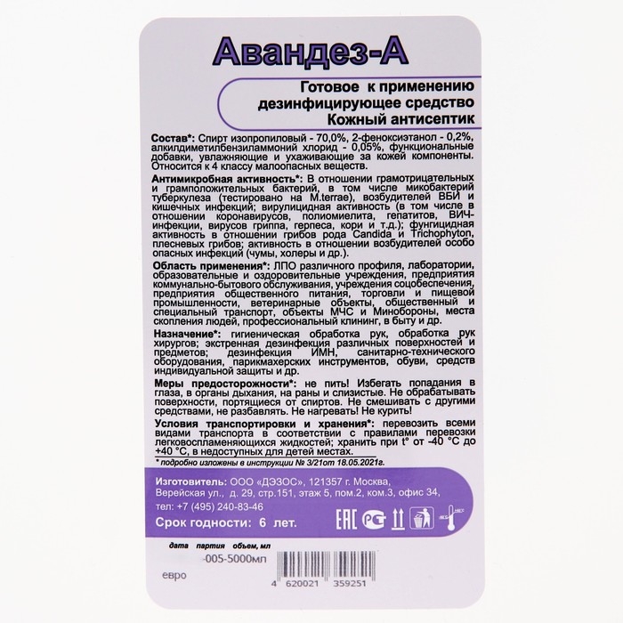 Готовая к применению прозрачная бесцветная жидкость, обладающая бактерицидной, вирулицидной, туберкулоцидной и фунгицидной активностью, обеспечивающая быстрый и продолжительный антисептический эффект. Обладает пролонгированным действием. Не требует смывания. Полностью отвечает требованиям СанПин и ГОСТ. Относится к 4 классу мало опасных веществ.