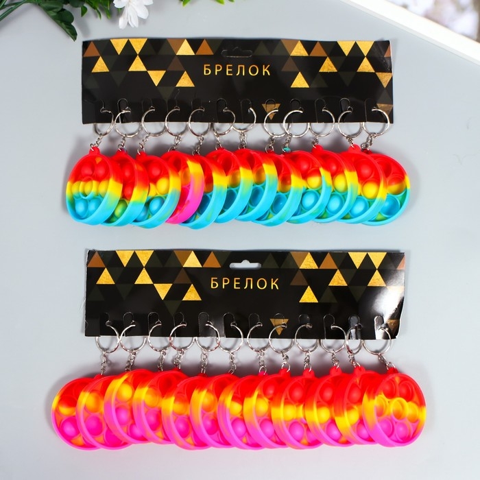 Брелок резина антистресс (бесконечная пупырка) "Круг разноцветный" МИКС 5,5х5,5х1,3 см