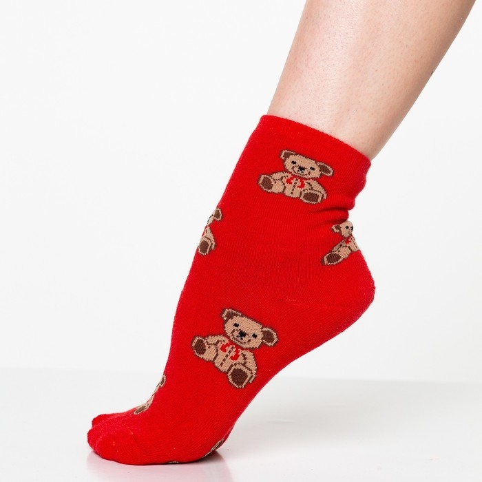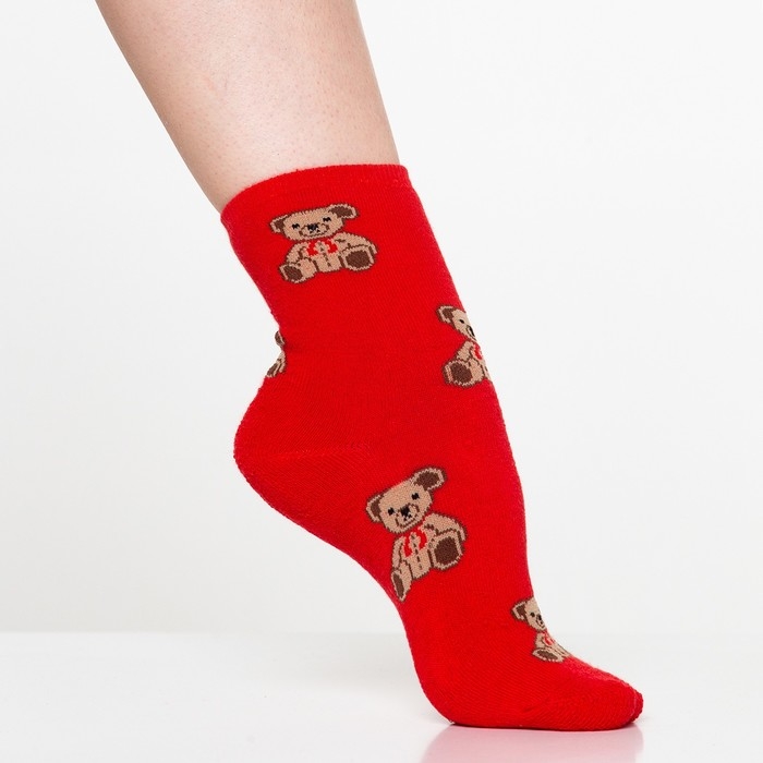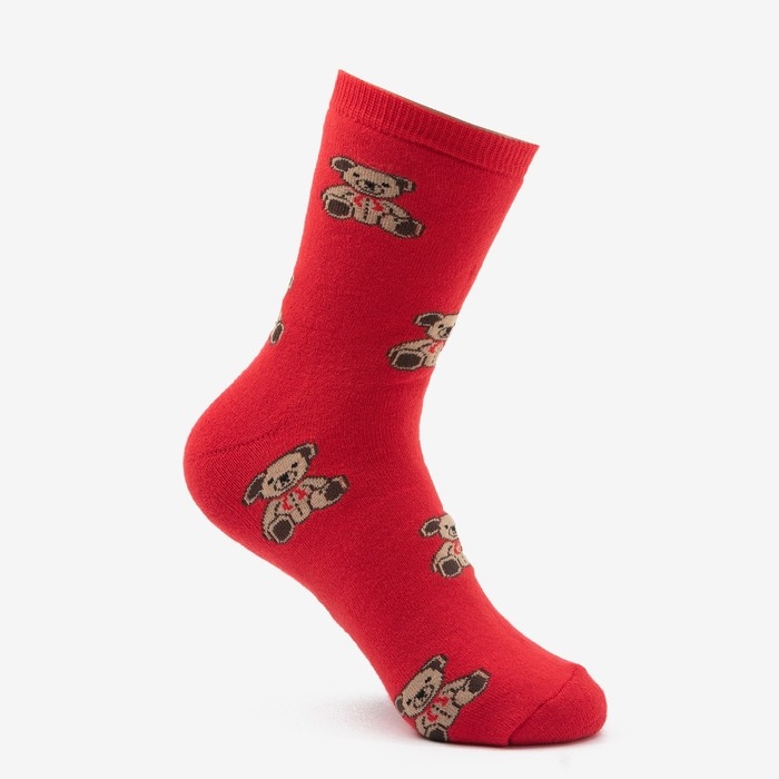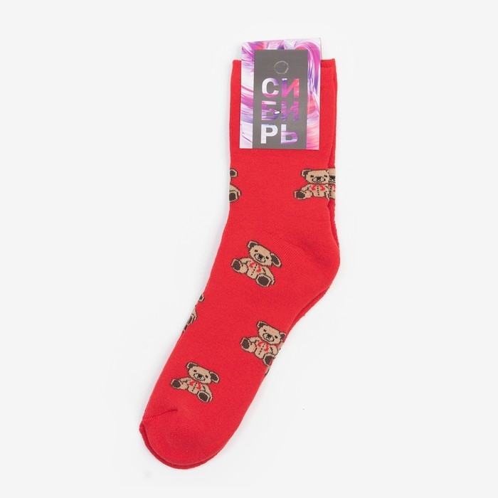 Носки зимние женские «Мишки», цвет красный, размер 23-25 (37-40)