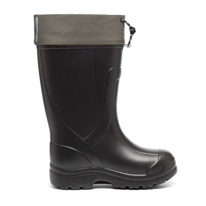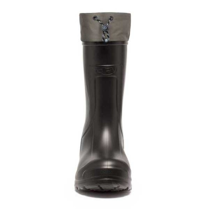 Колодка разработана специально для широкой стопы и высокого подъема. Благодаря широкому голенищу сапоги легко снимать и надевать без помощи рук. Высота сапога из ЭВА с манжетом составляет в среднем 41 см, т. е. это тип российских коротких сапог, в которых удобно сидеть на зимней рыбалке. В сапогах также удобно ходить. Не только потому, что материал ЭВА легкий и упругий, но и потому, что край мягкого вкладыша выше края сапога (но ниже манжета). Таким образом, ЭВА не травмирует голень человека.