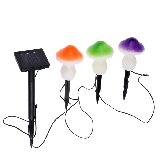 Садовый светильник на солнечной батарее «Грибы», 21 см, 3 LED, свечение тёплое белое