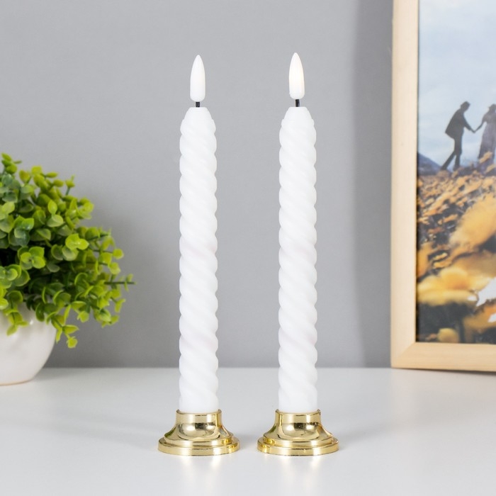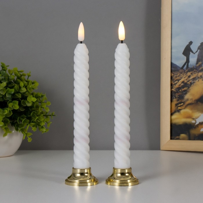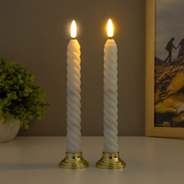 Набор светодиодных свечей, ночники LED RISALUX «Спираль», 2 шт., от батареек 2×ААА, 4.5×4.5×22 см