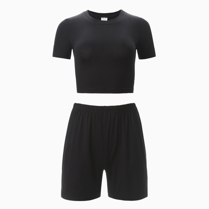 Комплект женский (футболка, шорты) MINAKU: Home collection цвет чёрный, размер 42