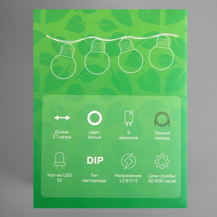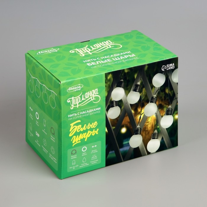 Гирлянда «Нить», 2.7 м, с насадкамив виде шаров, IP44, 10 LED, 8 режимов, солнечная батарея, тёмная нить, свечение белое