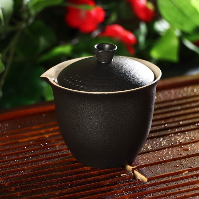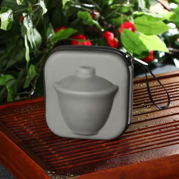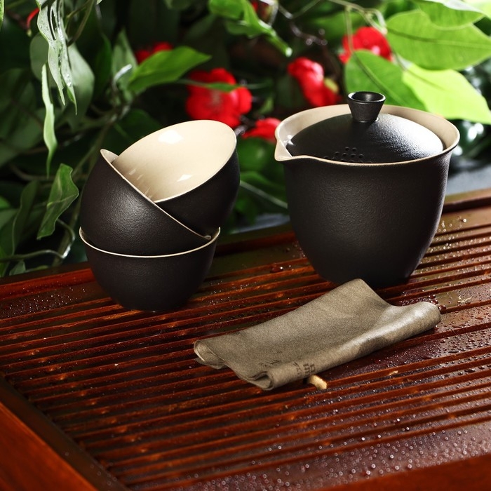 Набор для чайной церемонии керамический «Атмосфера», 6 предметов: чайник 250 мл, 3 пиалы 50 мл, тряпка, сумка, цвет коричневый