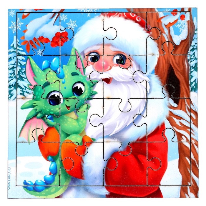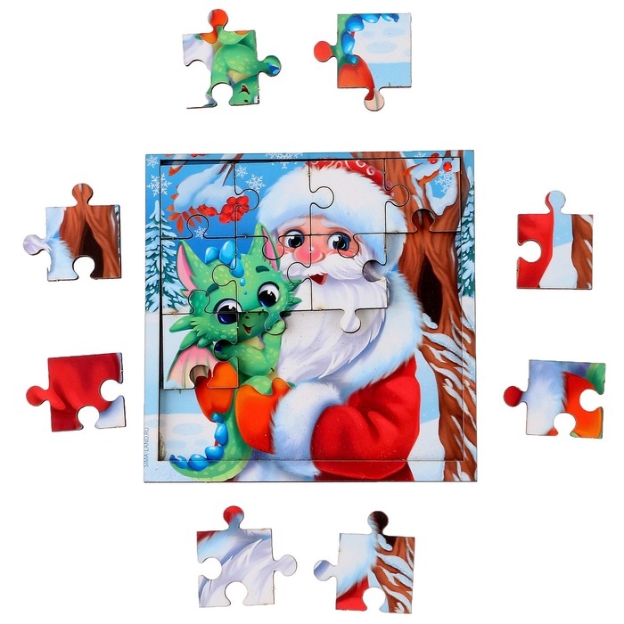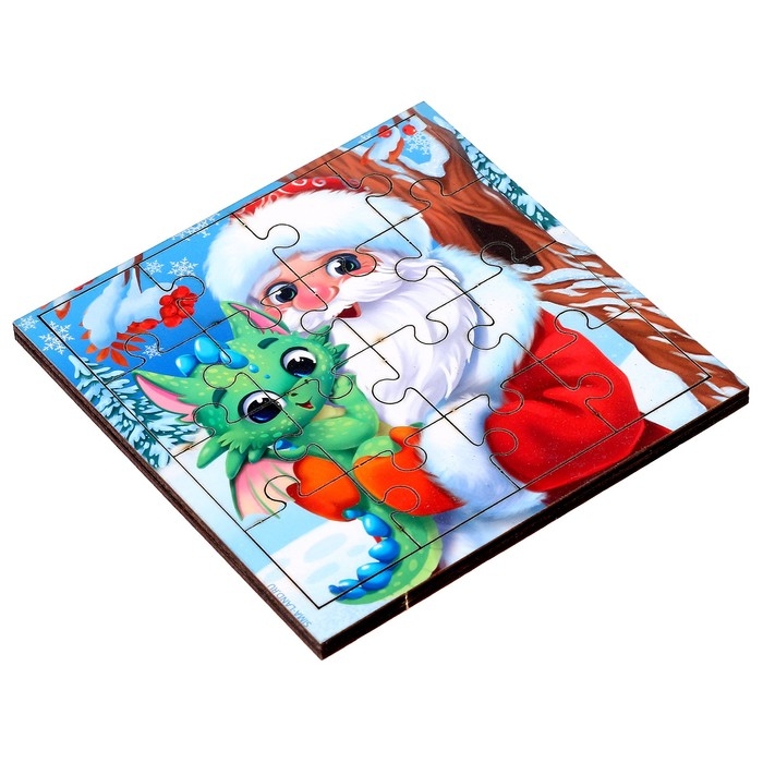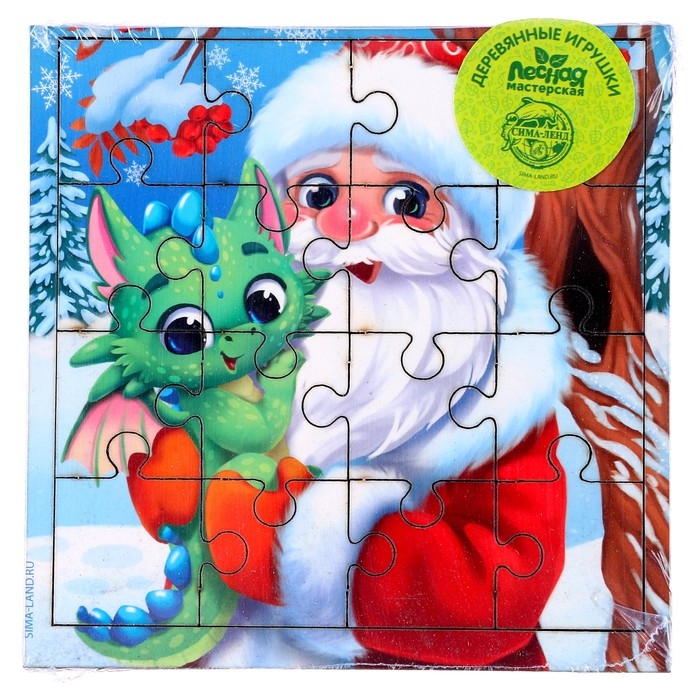 Пазл для детей деревянный на новый год «Дед Мороз и дракоша»