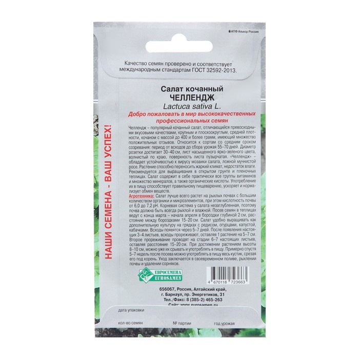 Семена Салат айсберг Таймс, «Всхожесть 99%», 7 шт.