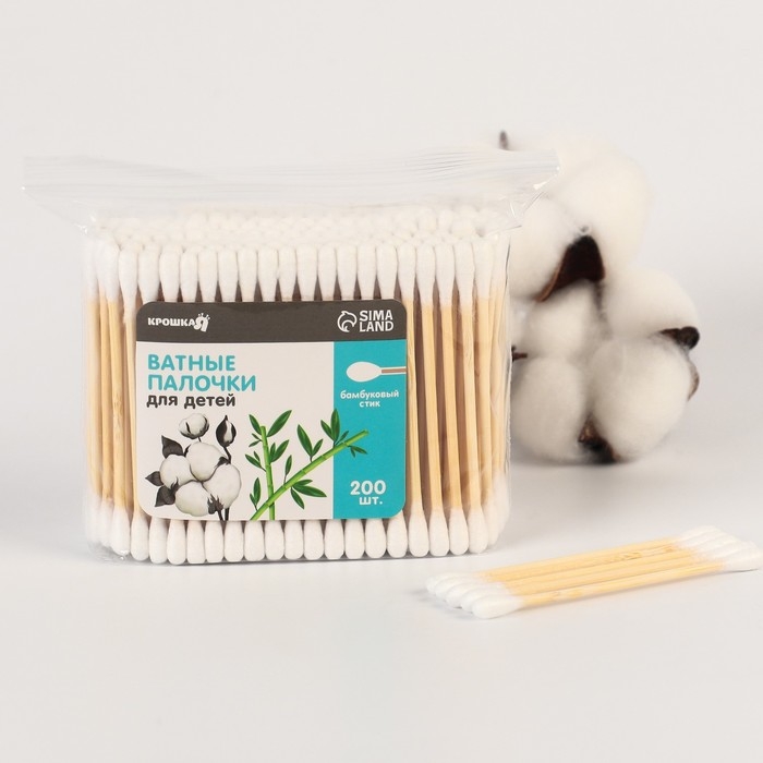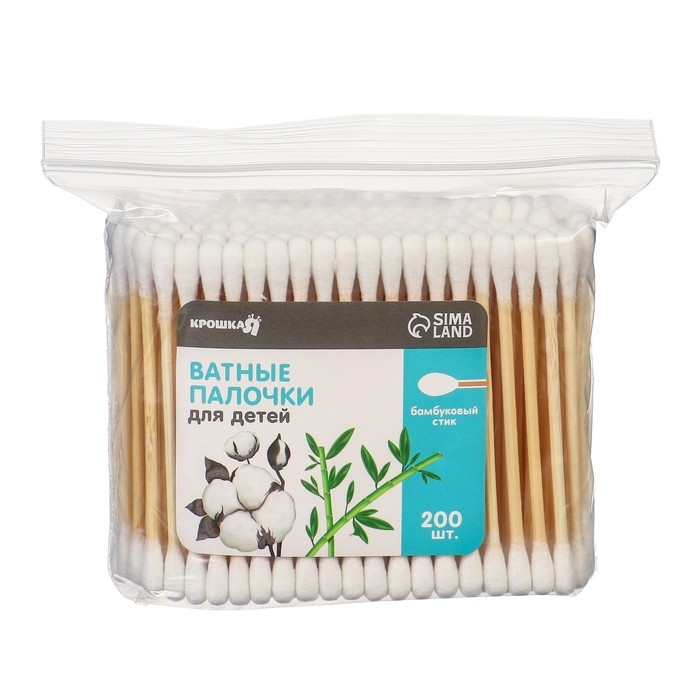 Ватные палочки, пакет 200 шт., наконечник - классика, хлопок/бамбук(стик)