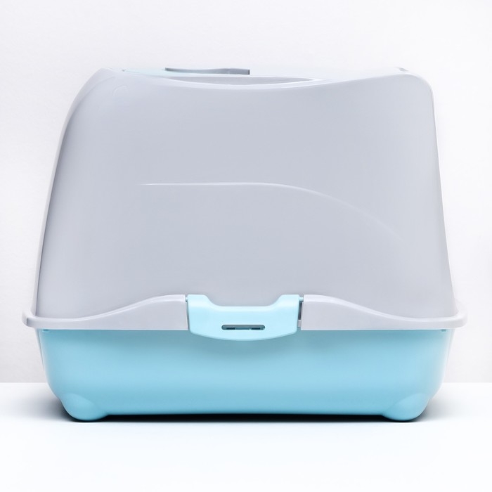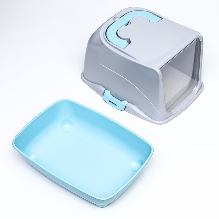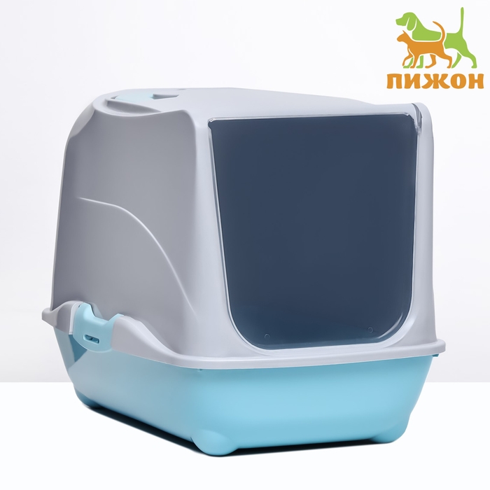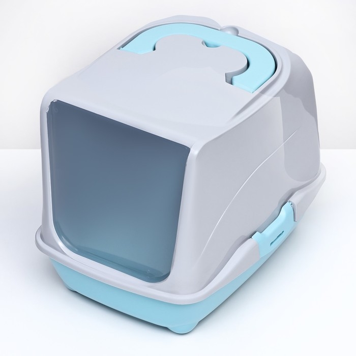 Туалет-домик для кошек закрытый с дверцей 43*32*33 см, бирюзово-серый