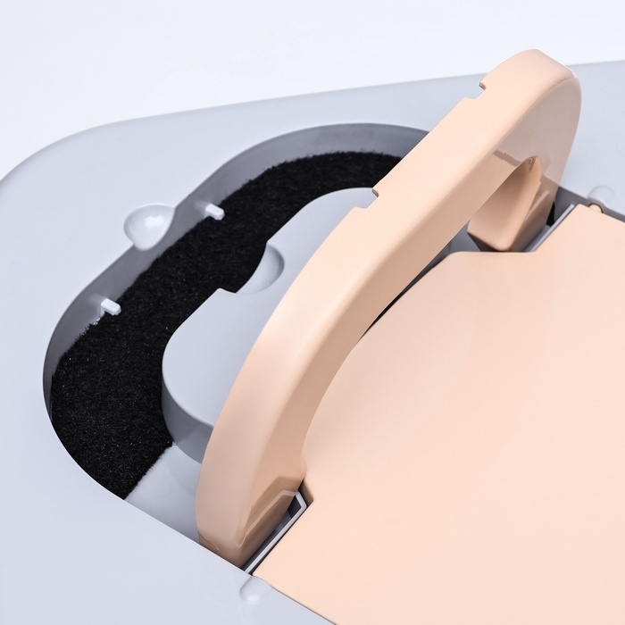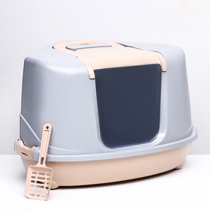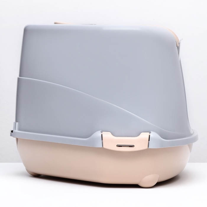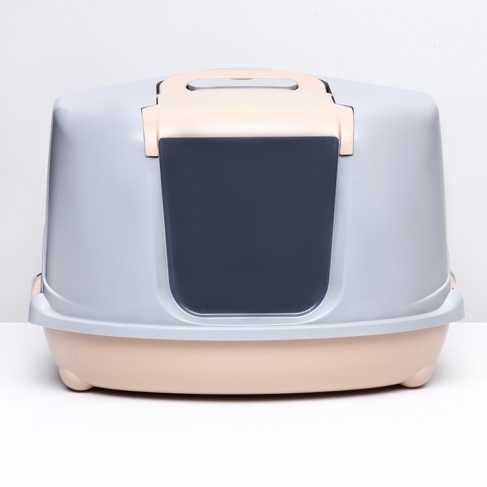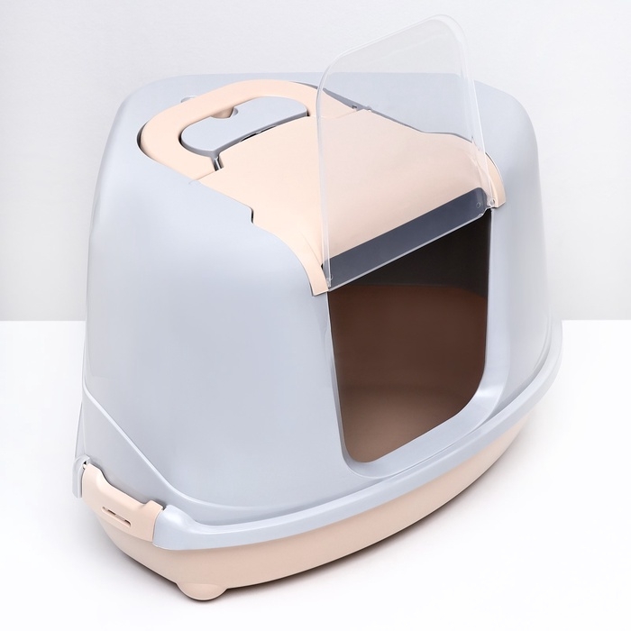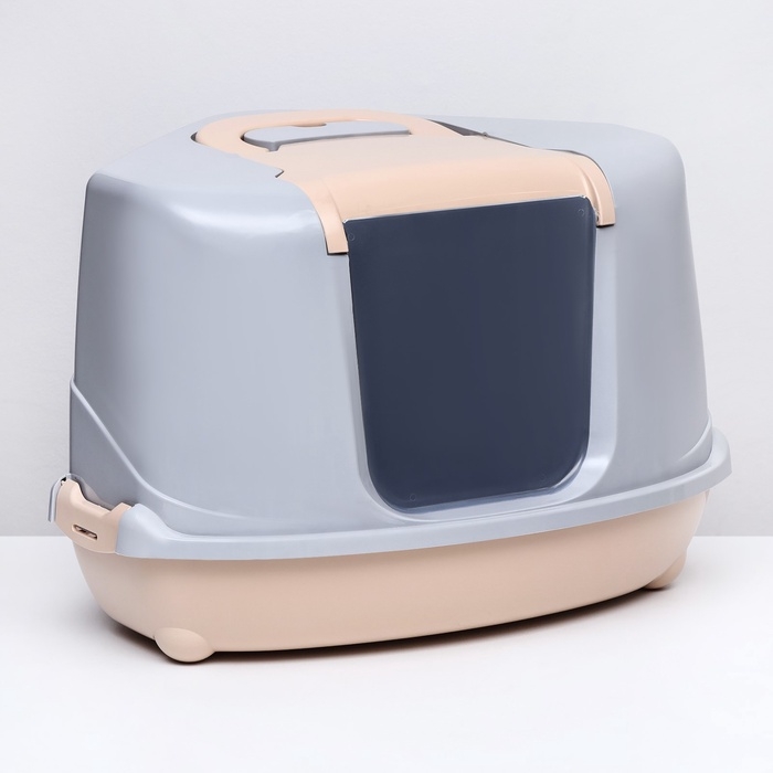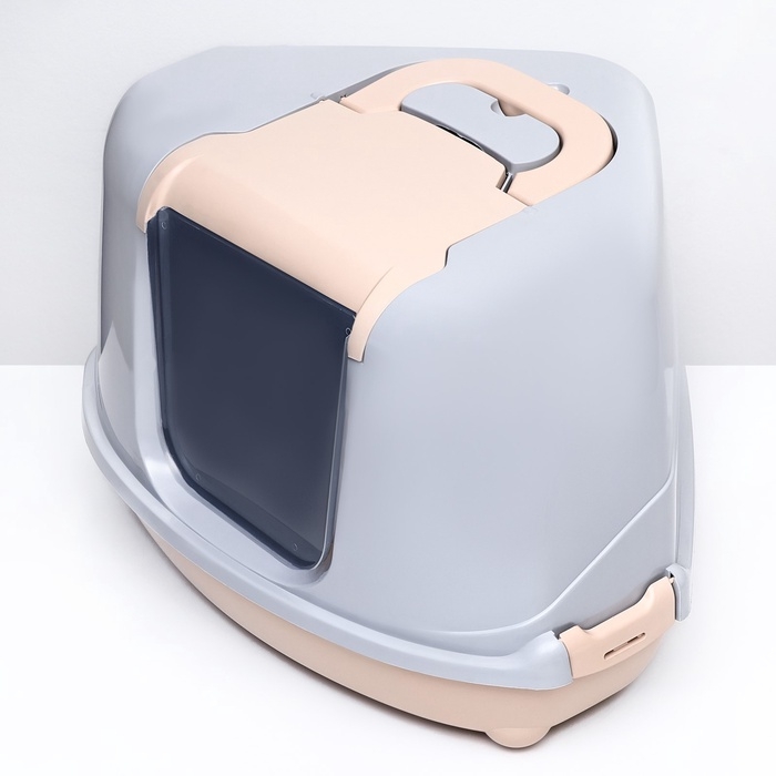 Туалет-домик угловой для кошек закрытый с дверцей 57*46*37 см, бежево-серый
