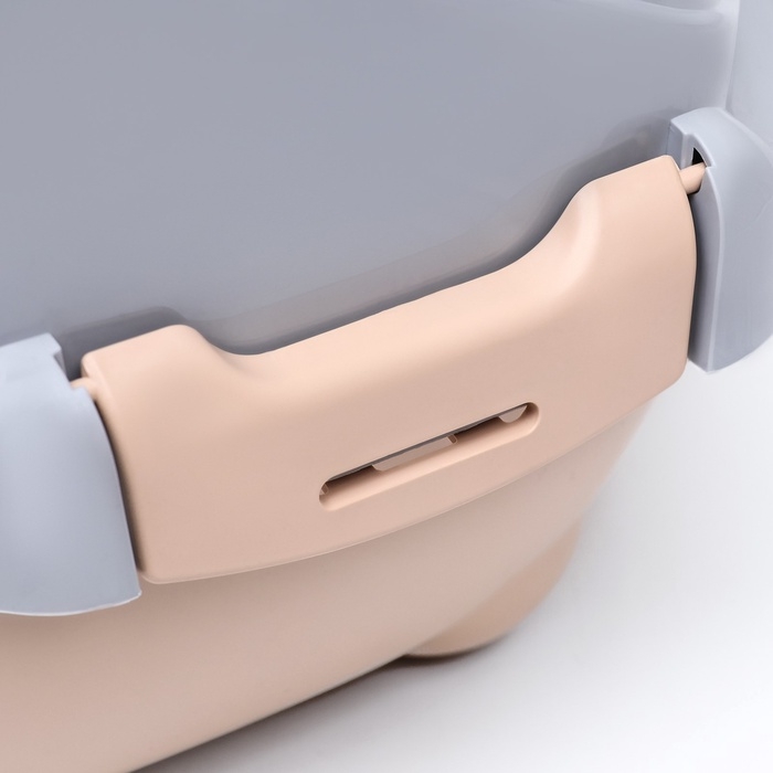 Закрытый туалет с верхним входом в бежево-серых тонах — идеальное решение для создания комфортного пространства для питомца и поддержания чистоты в доме.