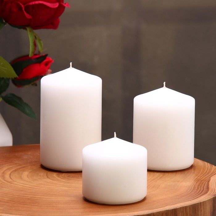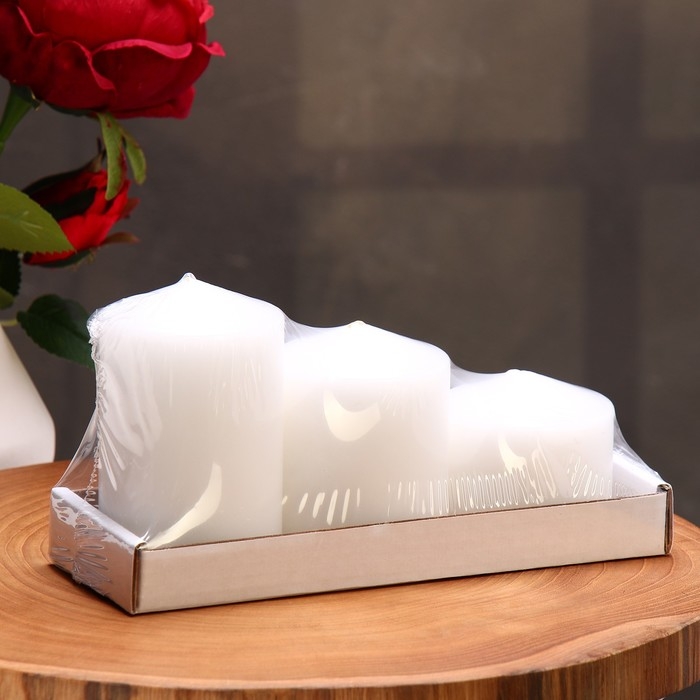 Набор свечей - цилиндров 3в1 (6х9,5 см, 6х8 см, 6х6,5 см), белый