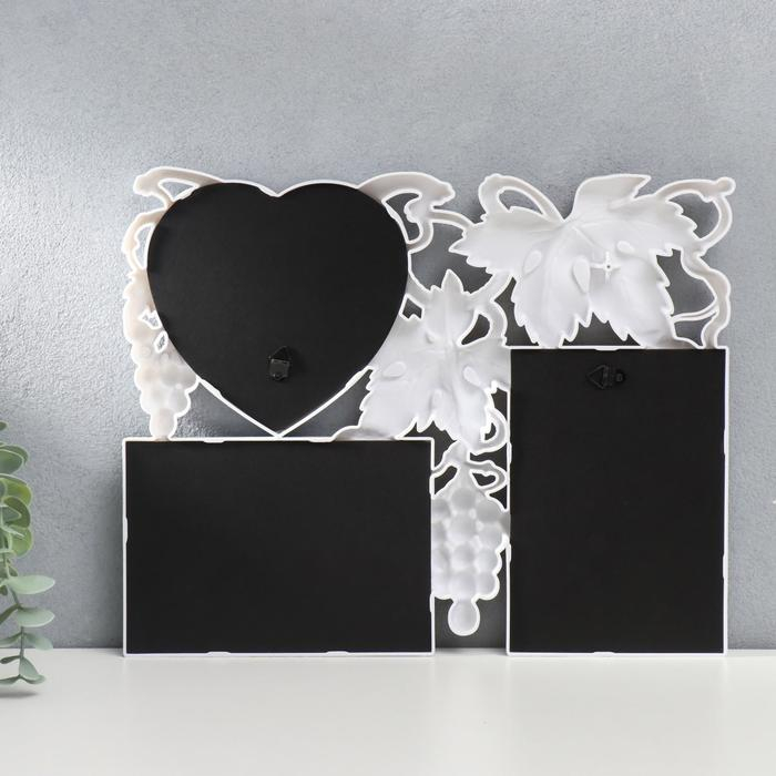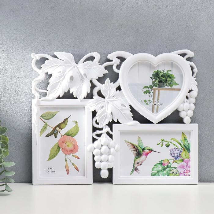 Фоторамка пластик на 3 фото 10х15, 13х13 см "Виноград" белый 26х33 см