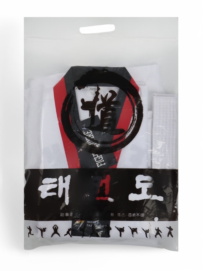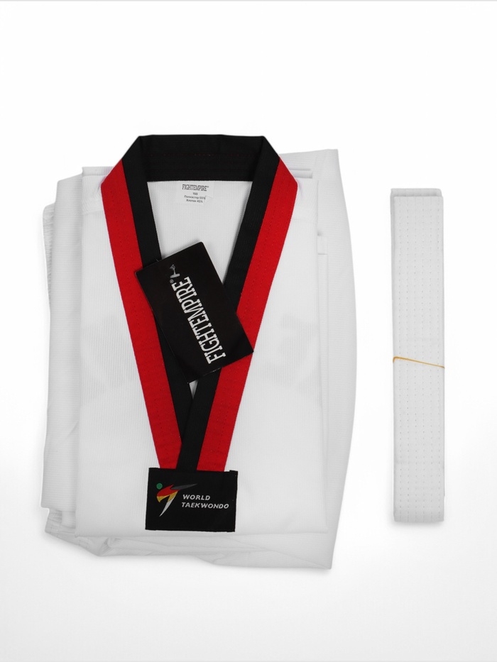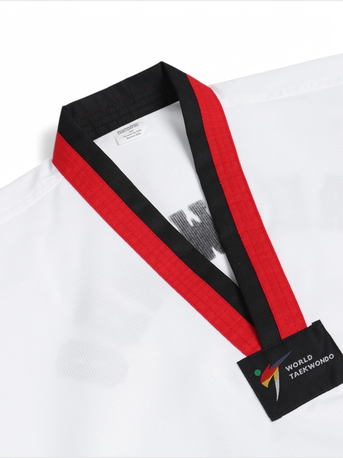 Добок (кимоно) для Тхэквондо, белый, черно-красный ворот, детский, размер 140