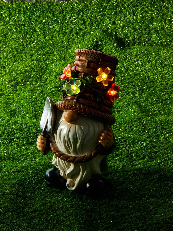 Садовая фигура "Гном с лопатой", 14х13.5х24 см, с подсветкой