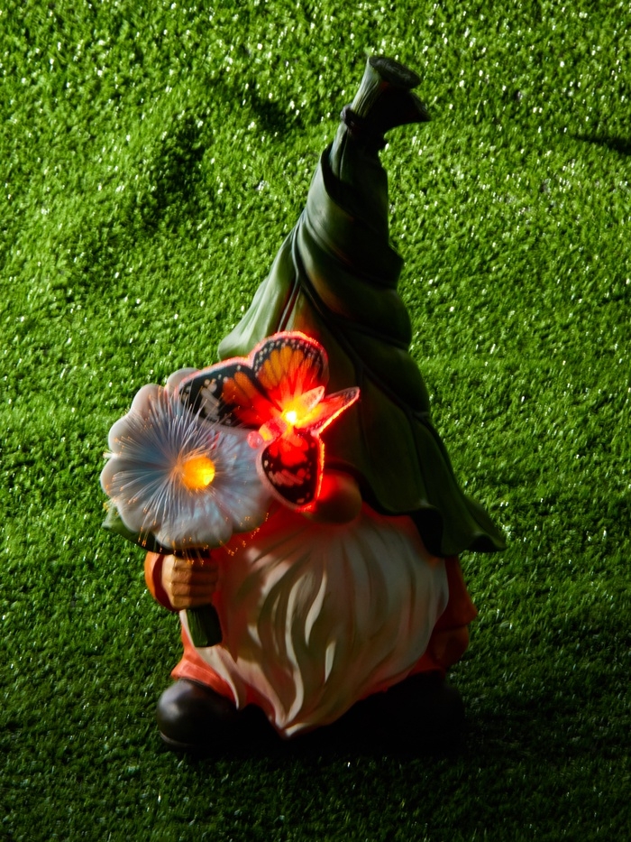 Садовая фигура "Гном с цветочком", 20х17х31.5 см, с подсветкой