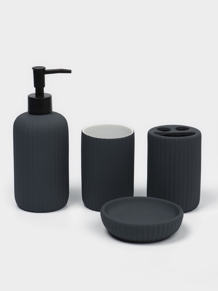 Набор для ванной "Лайн" 4 предмета (дозатор для мыла, стакан, 2 стакана, мыльница)