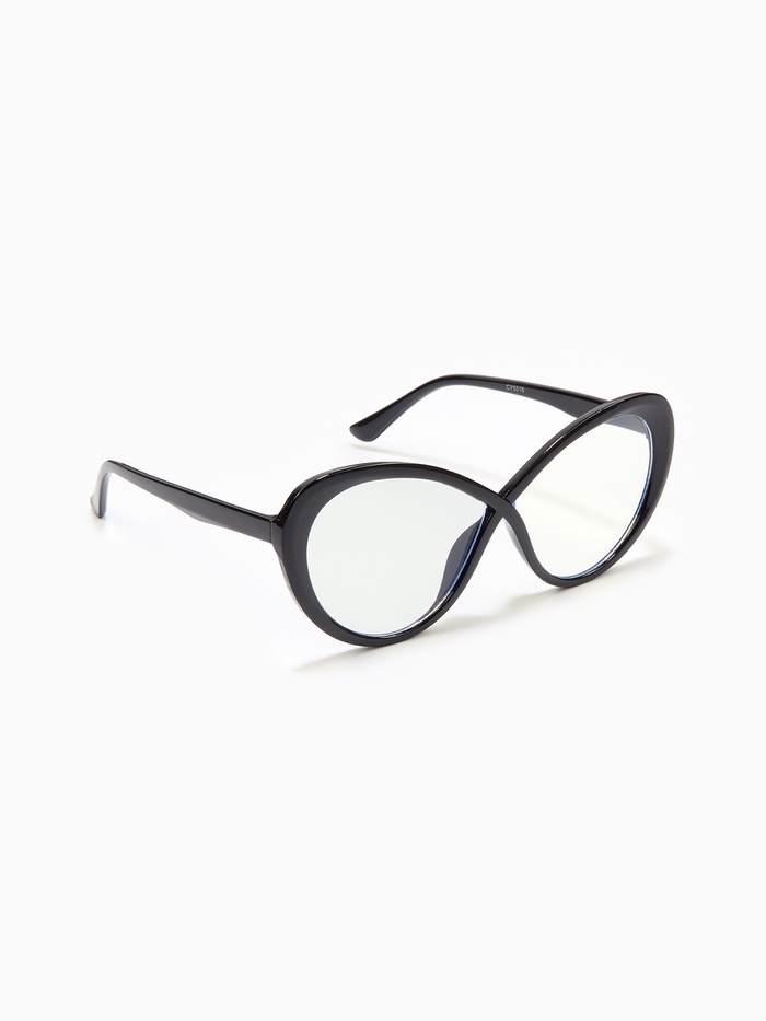 Очки женские имиджевые, прозрачные, дужка 14.2 см, ширина 14.1 см, линза 5.4×6.9 см, черные