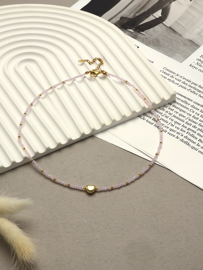 Чокер «Сердце» бусина №4, цвет розовый в золоте, 35 см