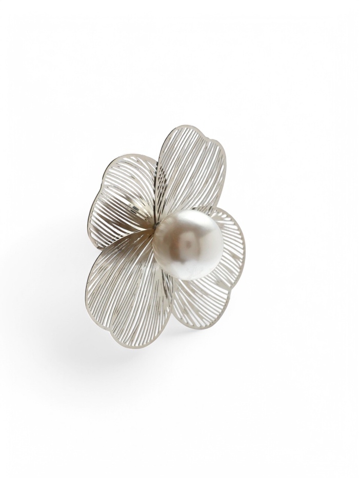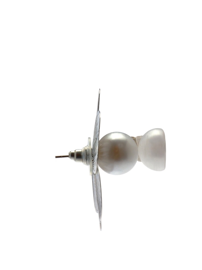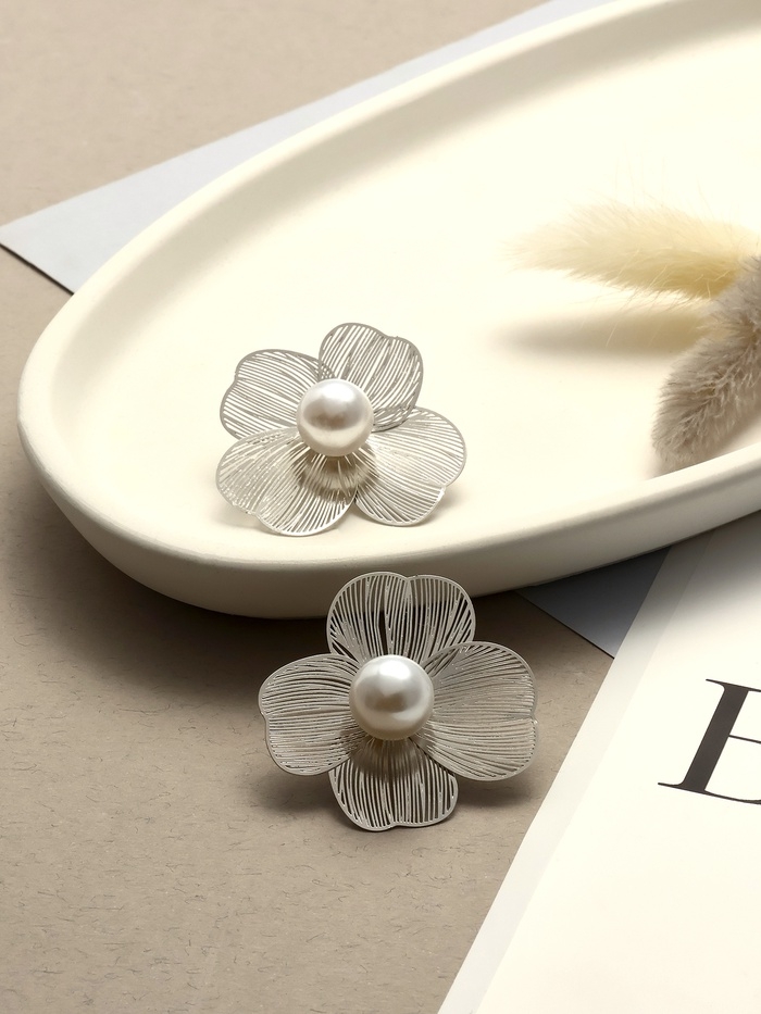 Серьги с жемчугом «Цветы» крупные, цвет белый в серебре