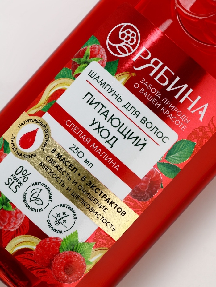 Гель для душа, увлажнение и уход, аромат малины, 250 мл, Рябина