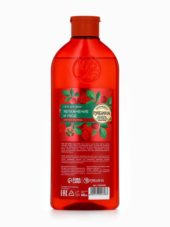 Гель для душа, увлажнение и уход, аромат малины, 400 мл, Рябина