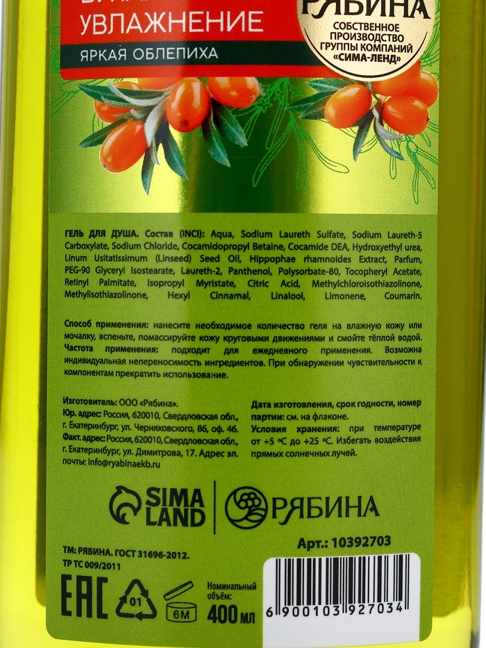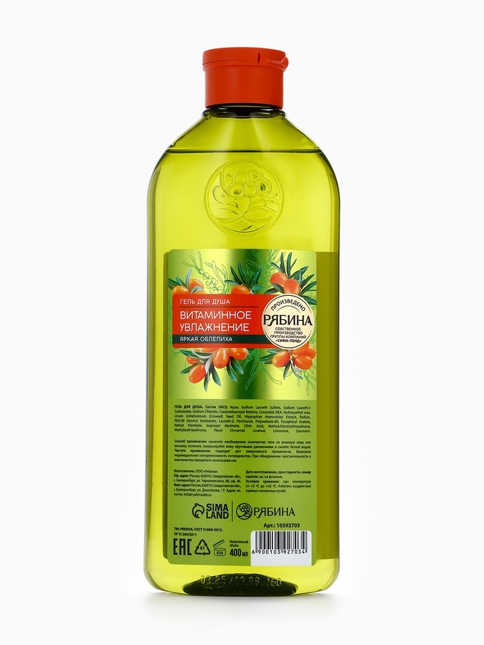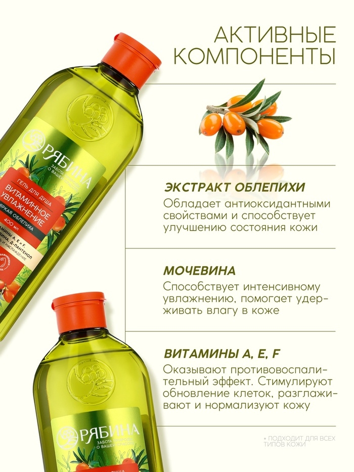 Гель для душа, витаминное увлажнение, аромат облепихи, 400 мл, Рябина