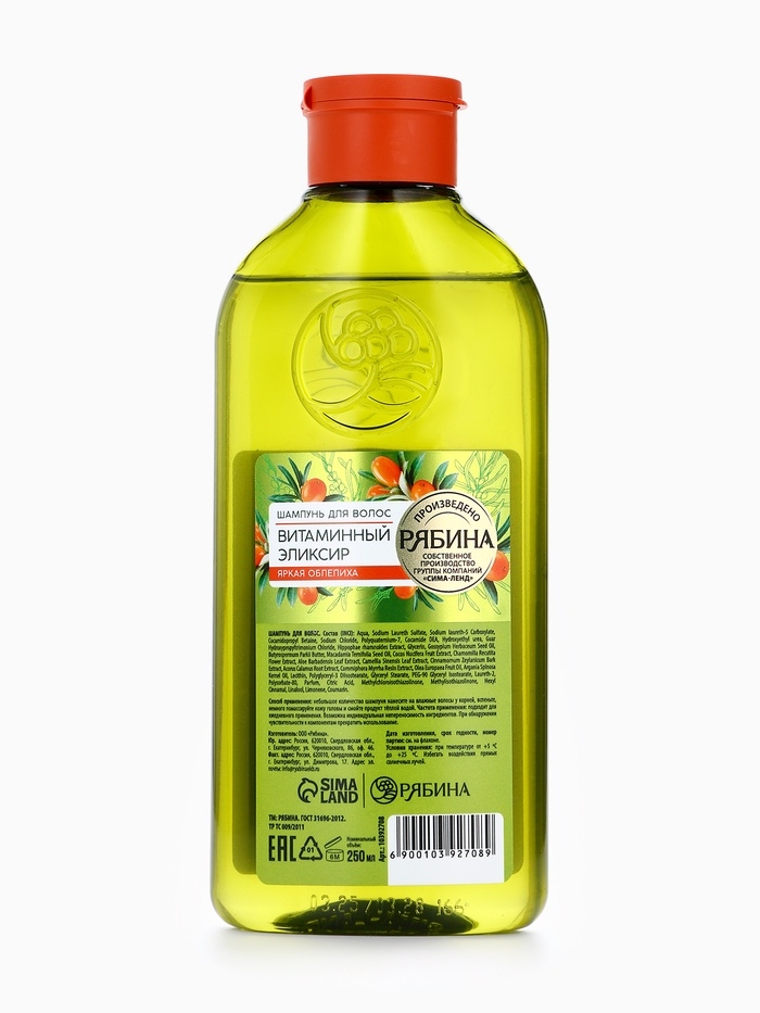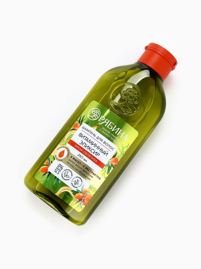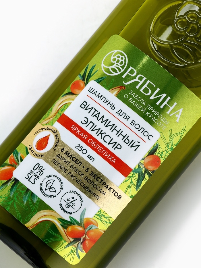 Шампунь для волос, витаминный эликсир, аромат облепихи, 250 мл, Рябина