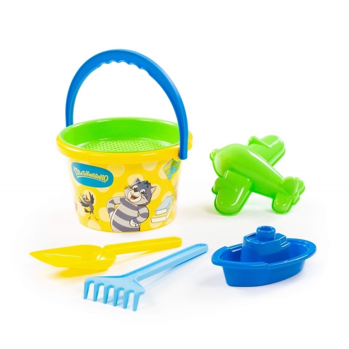 Песочный набор «Простоквашино», 6 предметов: ведро, ситечко, лопатка, грабельки, формочка, кораблик, МИКС