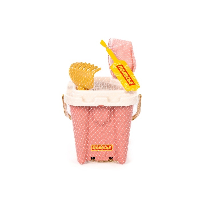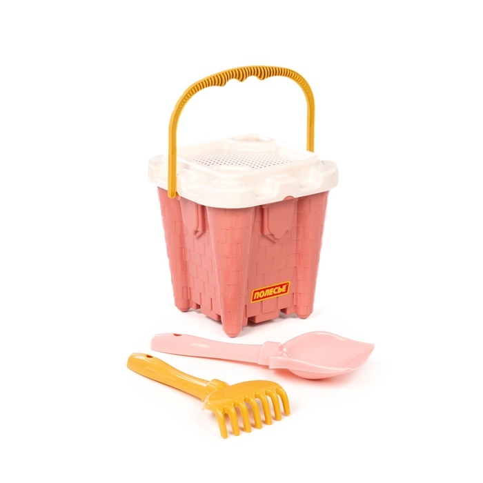Песочный набор игрушек, 4 предмета: ведро-замок, ситечко, лопатка, грабельки, розовый