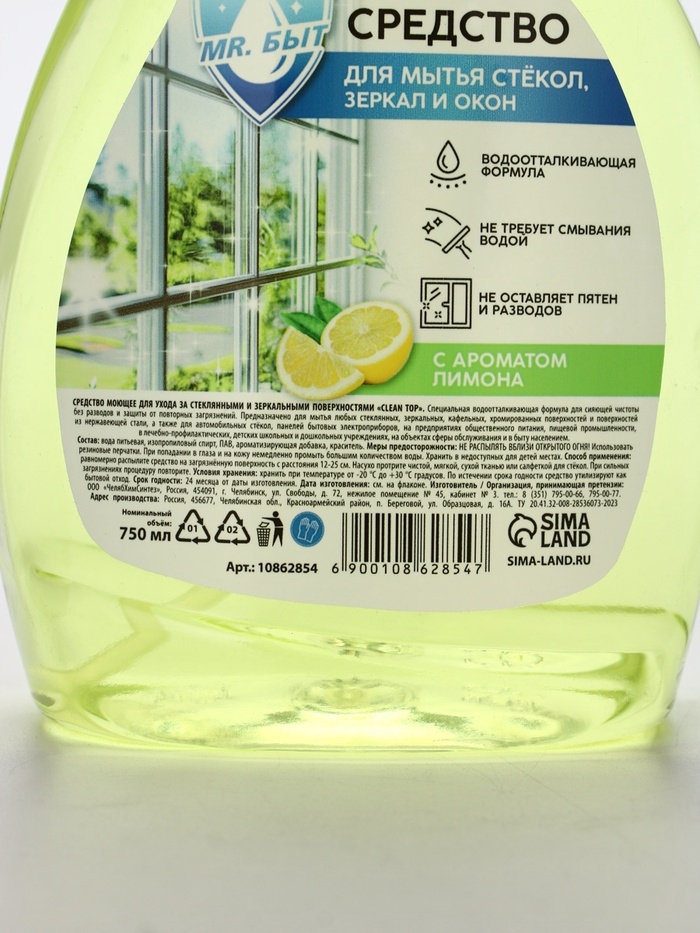 Mr.Быт Средство для мытья стёкол, зеркал и окон, 750 мл, аромат лимон