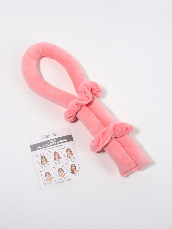 Мягкие бигуди «Волшебный локон», 3 предмета: бигуди, резинки - 2 шт., плюшевые, розовый