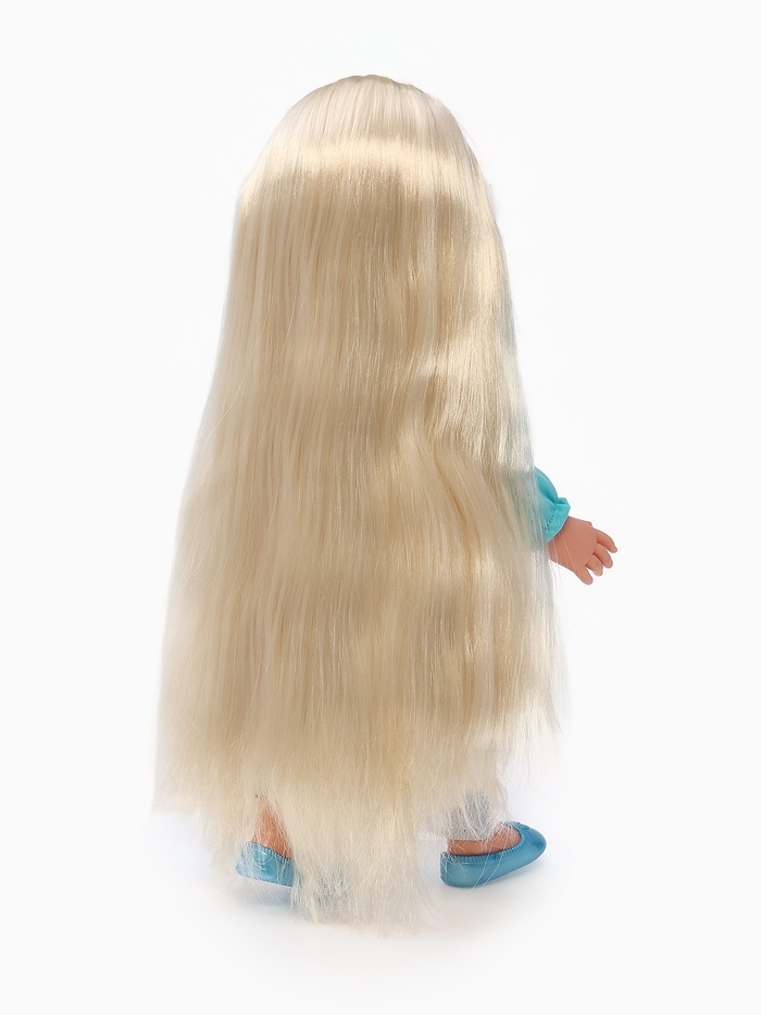 - Длинные красивые волосы можно укладывать в разные причёски. В комплекте есть расчёска, заколочки и резиночки для создания новых образов.