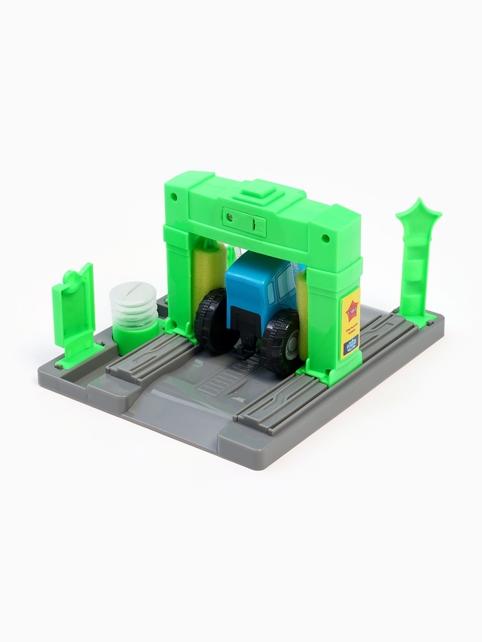 - Реалистичная мойка: набор имитирует работу настоящей автомойки. Трактор подает воду, сопровождая процесс звуковыми эффектами и фразами: «Осторожно, мойка запущена», «Мойка завершена, пожалуйста, убери машину».