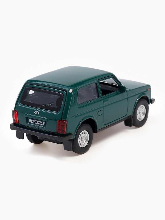- Узнаваемый дизайн! Точная копия легендарной LADA 4×4 в миниатюре. Зелёный цвет – классический для этого внедорожника, который не пачкается и долго выглядит как новый.
