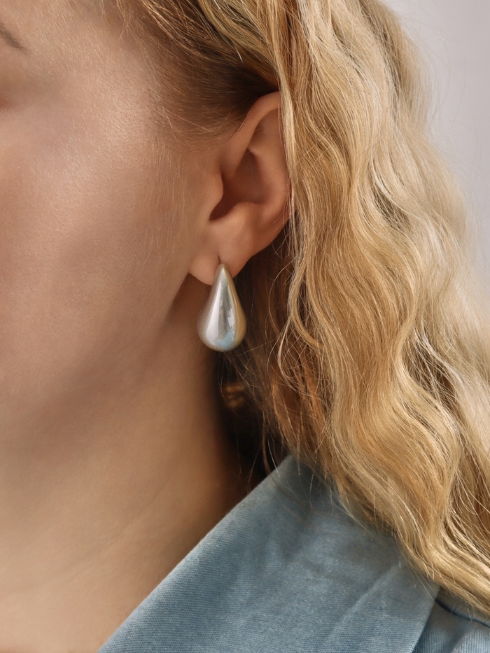 Серьги металл «Капля» микро блёстки, цвет серебро