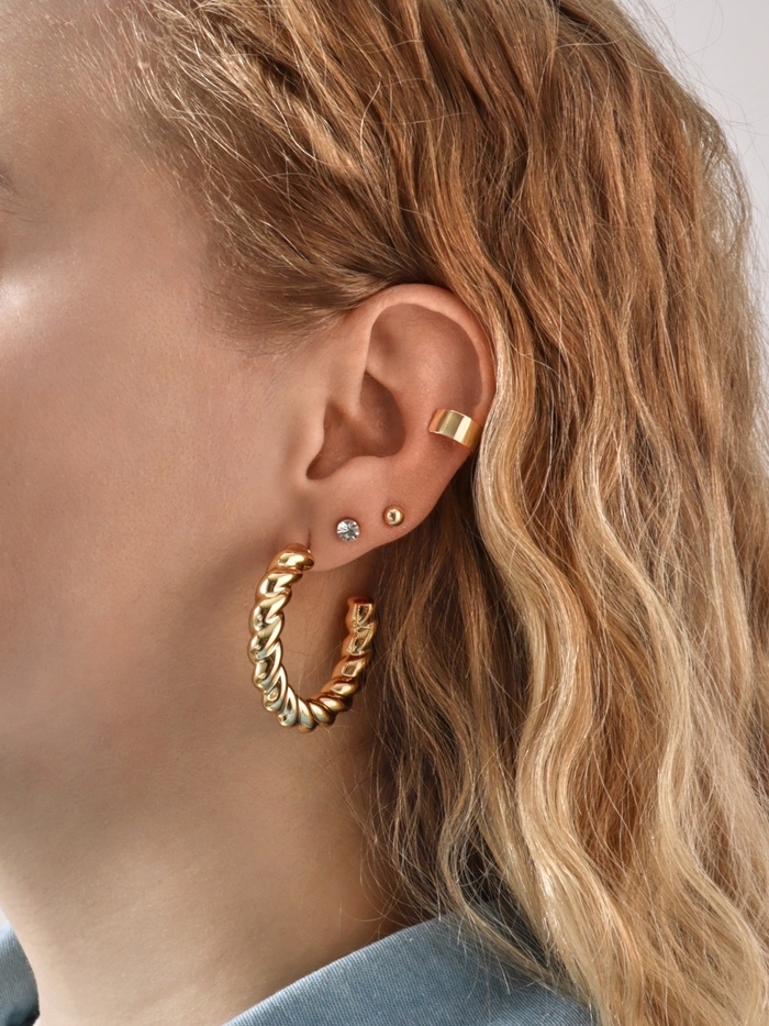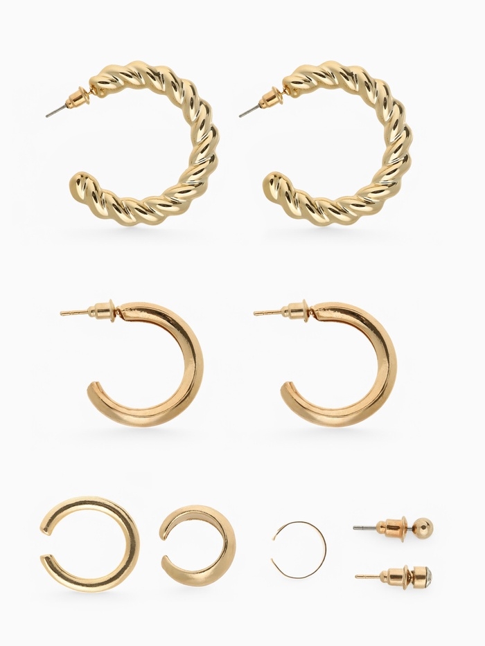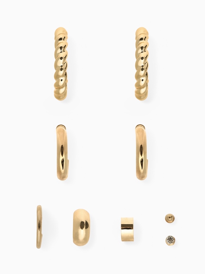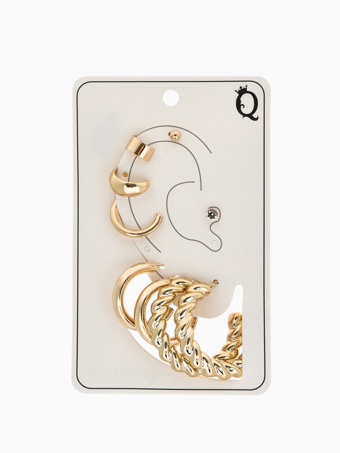 Набор серьги и каффы 9 шт. «Кольца» переплетение, цвет золото