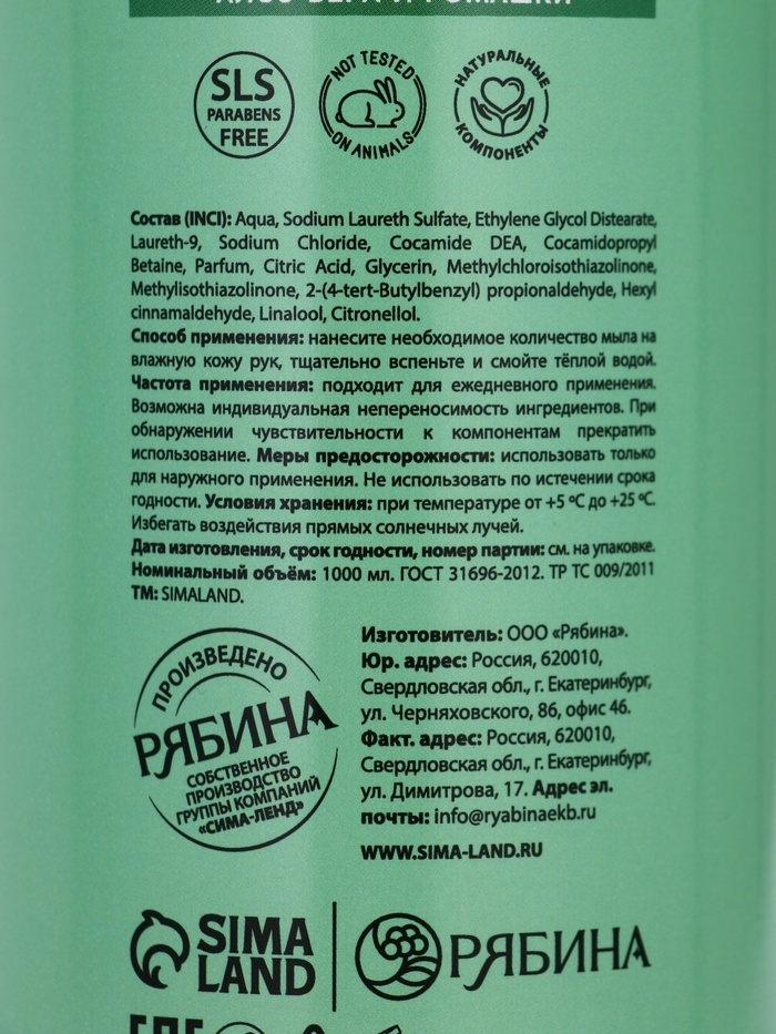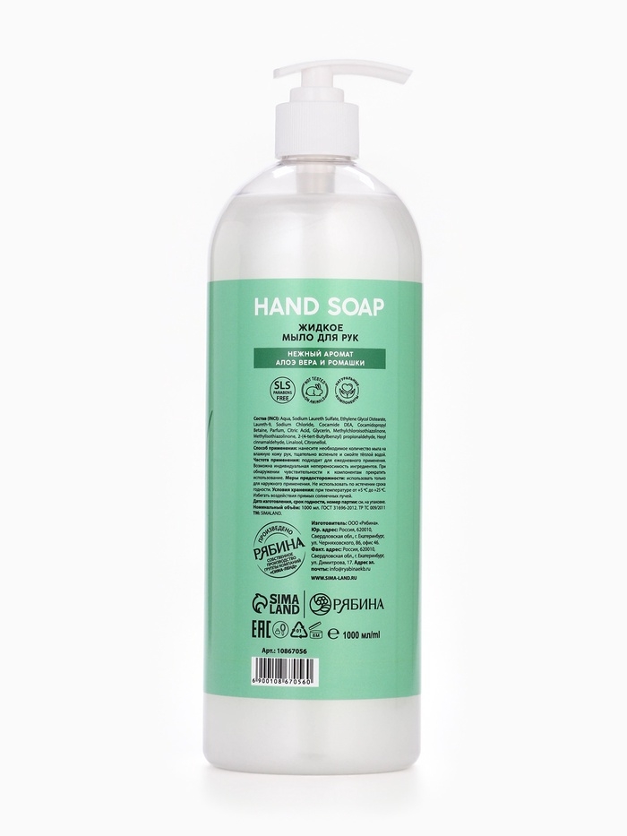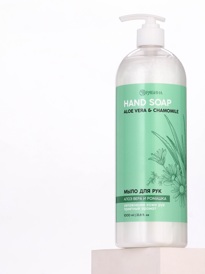 Жидкое мыло для рук 1000 мл, ромашка и алоэ, Рябина