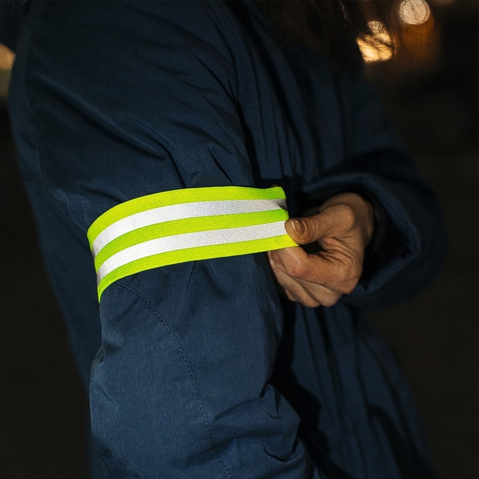Закрепите резинку на руке, ноге, одежде или сумке, чтобы окружающие, в том числе водители, лучше вас видели.