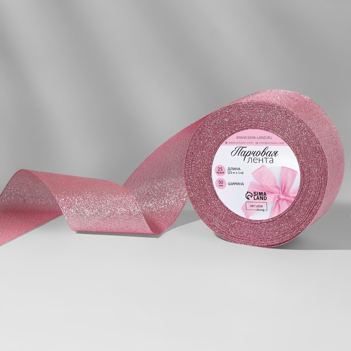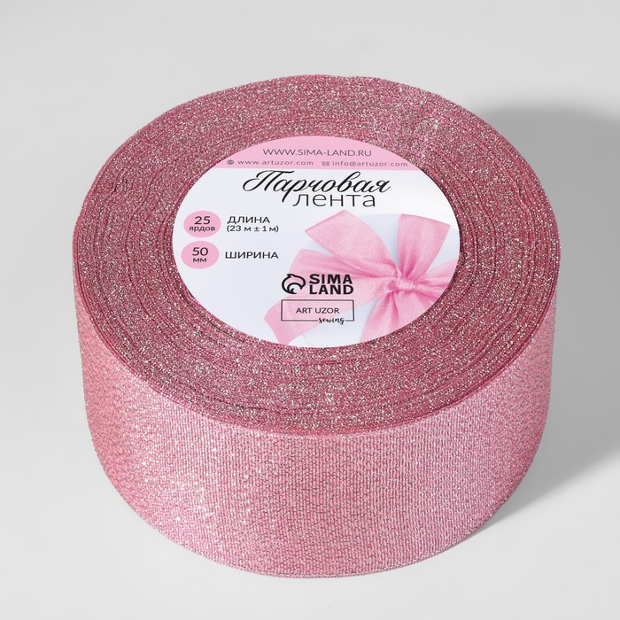 Лента парчовая, 50 мм, 23 ± 1 м, цвет розовый №013